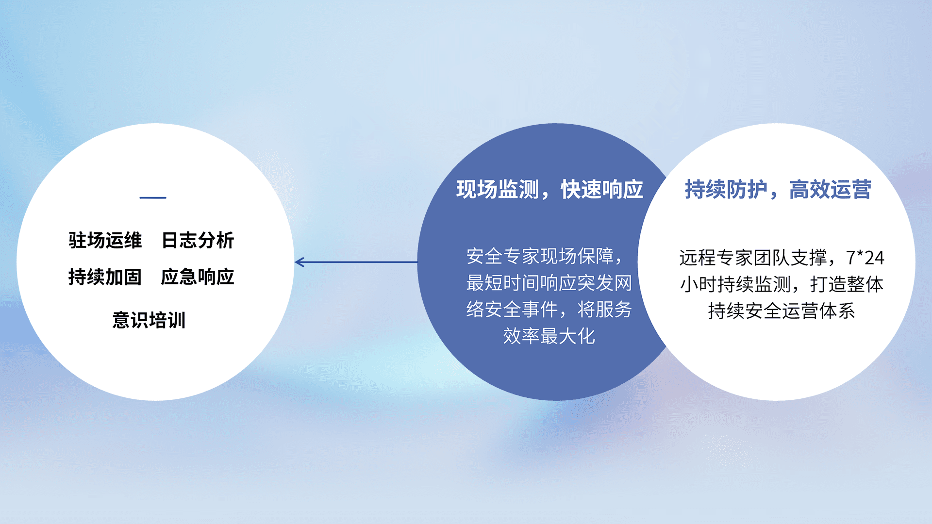 针对客户行业特性,,,,提供专属的一站式安全管理服务,,,帮助客户全面感知网络空间威胁,,,,通过安全专家的线上、、、、线下防护支持,,,,实现风险闭环,,,将安全保障常态化,,,,为客户打造常态化安全运维运营服务。。